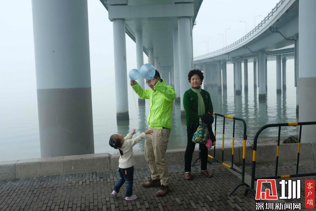 2019年1月5日,深圳灣,一位小女孩正在和父親玩耍。