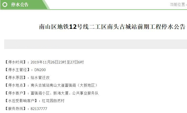 提前做好準(zhǔn)備!26-29日南山、福田這些小區(qū)將停水