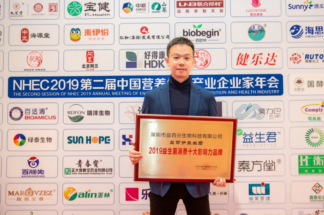 深圳特區(qū)報2019年11月26日訊 11月20日,2019(第二屆)中國營養(yǎng)健康產(chǎn)業(yè)企業(yè)家年會暨中國營養(yǎng)健康品牌影響力論壇,于杭州國際博覽中心(G20會場)正式舉辦,深圳市益百分旗下品牌益生君亦有幸受邀參與本次年會。作為一款成人益生菌補充劑品牌,益生君憑借精準(zhǔn)、敏銳、獨特的市場嗅覺,填補了市場空白,為我國成人益生菌研究起到了重要的推動作用,榮獲2019“益生菌消費十大影響力品牌”稱號。