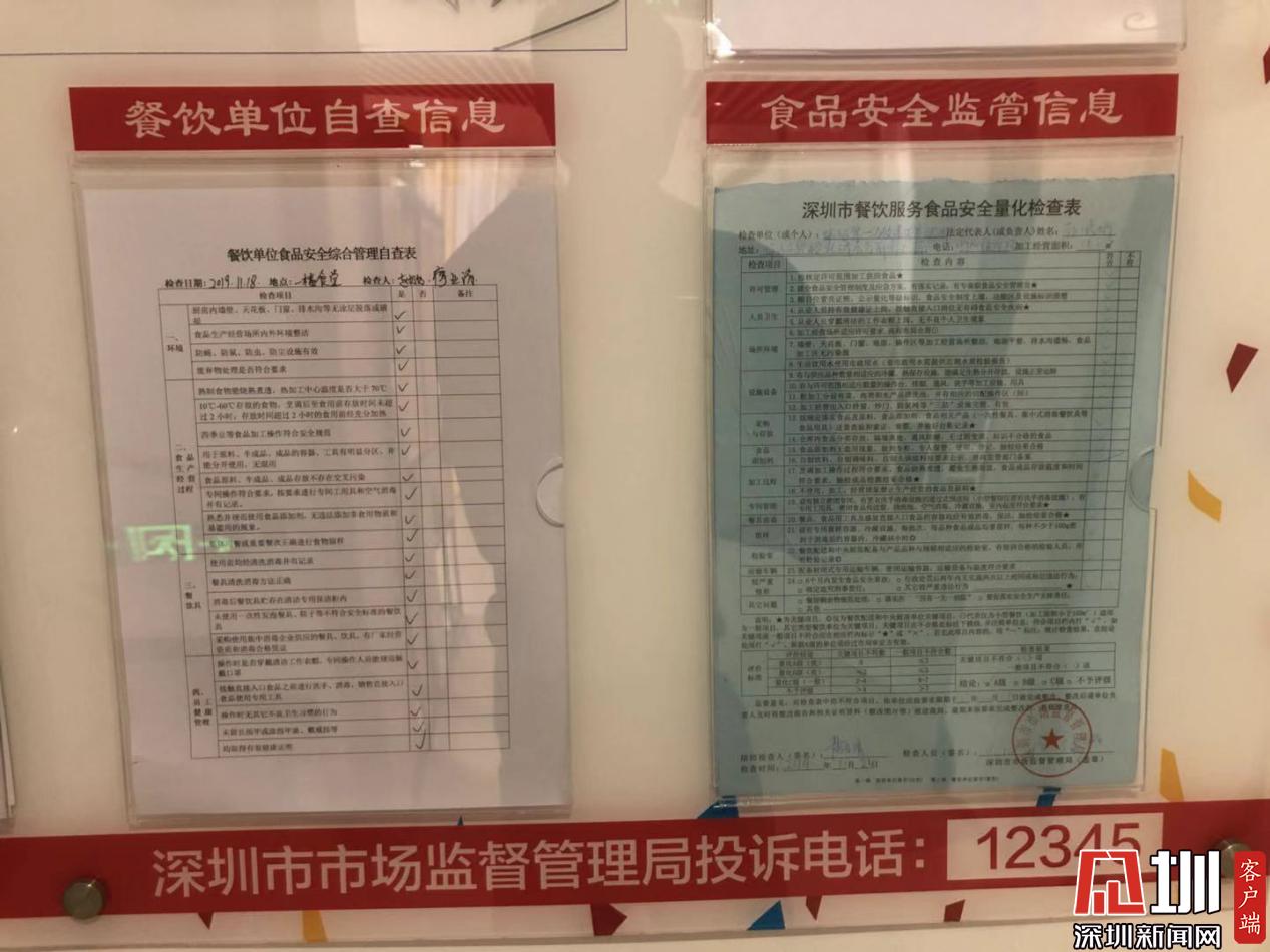 食品安全公示欄上展示了餐飲單位綜合管理自查表