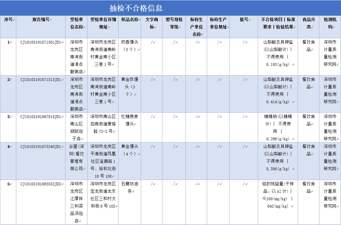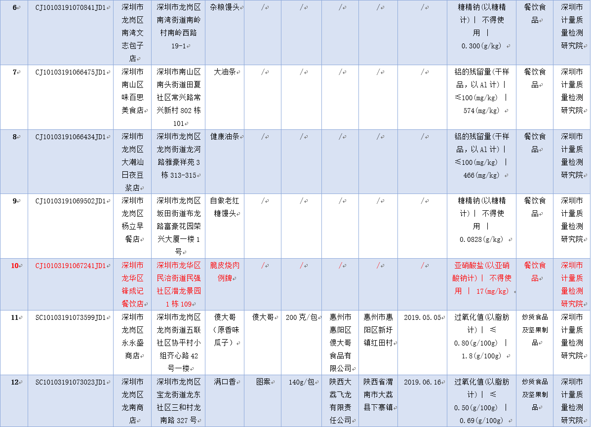 見圳客戶端·深圳新聞網(wǎng)2019年12月2日訊 為保障深圳食品消費(fèi)安全,深圳市市場(chǎng)監(jiān)督管理局于2019年8-9月組織對(duì)生產(chǎn)、流通、餐飲環(huán)節(jié)的食品開展了專項(xiàng)抽樣檢驗(yàn)工作。