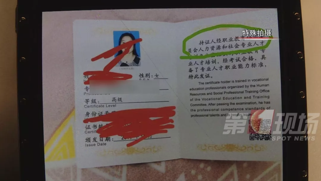 在詢問證書是哪里頒發(fā)時(shí),工作人員說,國內(nèi)其他城市這類證書分初級(jí)中級(jí)高級(jí),要分別交錢考,她們一步到位,直接發(fā)高級(jí)證書,全國通用。