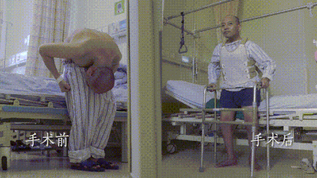 牽動全院人心的第三次手術(shù)在9月18日進(jìn)行。這一步要將李華彎成C字型的脊柱拉直。手術(shù)進(jìn)行了幾乎一天,醫(yī)生們找準(zhǔn)脊椎最彎曲的兩處地方,截?cái)?,重新拼接成直線。手術(shù)完成后當(dāng)天晚上,李華20年來第一次能躺平睡覺了!
