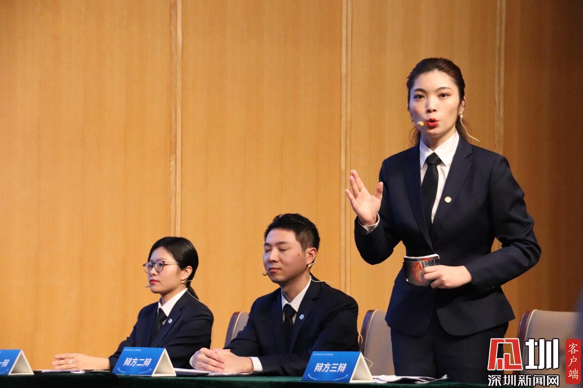 第2個(gè)辯題,辯方三辯李悅在總結(jié)陳詞。李悅來自北京市盈科(深圳)律師事務(wù)所。