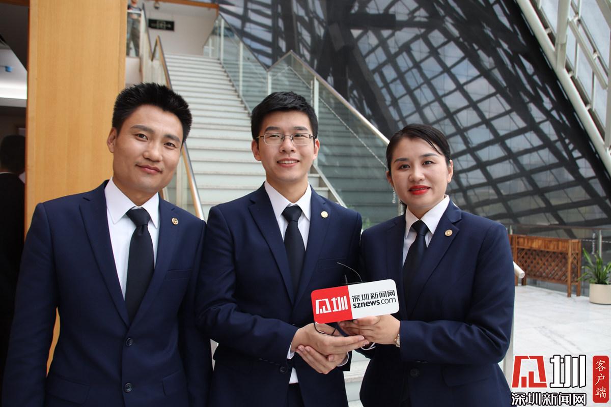 第一個(gè)辯題結(jié)束后,辯方辯手接受深圳新聞網(wǎng)記者采訪。從左到右依次為卜祥波、李銳杰、艾青三位律師。
