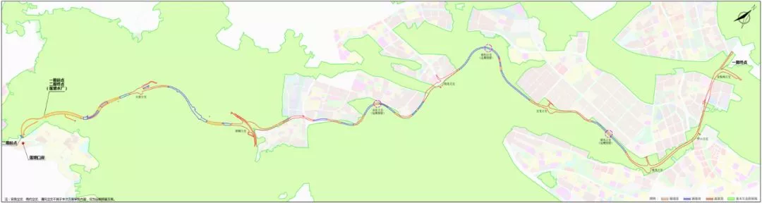 深圳市東部過(guò)境通道擬選址于羅湖區(qū)蓮塘街道、黃貝街道和東湖街道,龍崗區(qū)橫崗街道、園山街道和寶龍街道,坪山區(qū)坪山街道區(qū)域內(nèi)。
