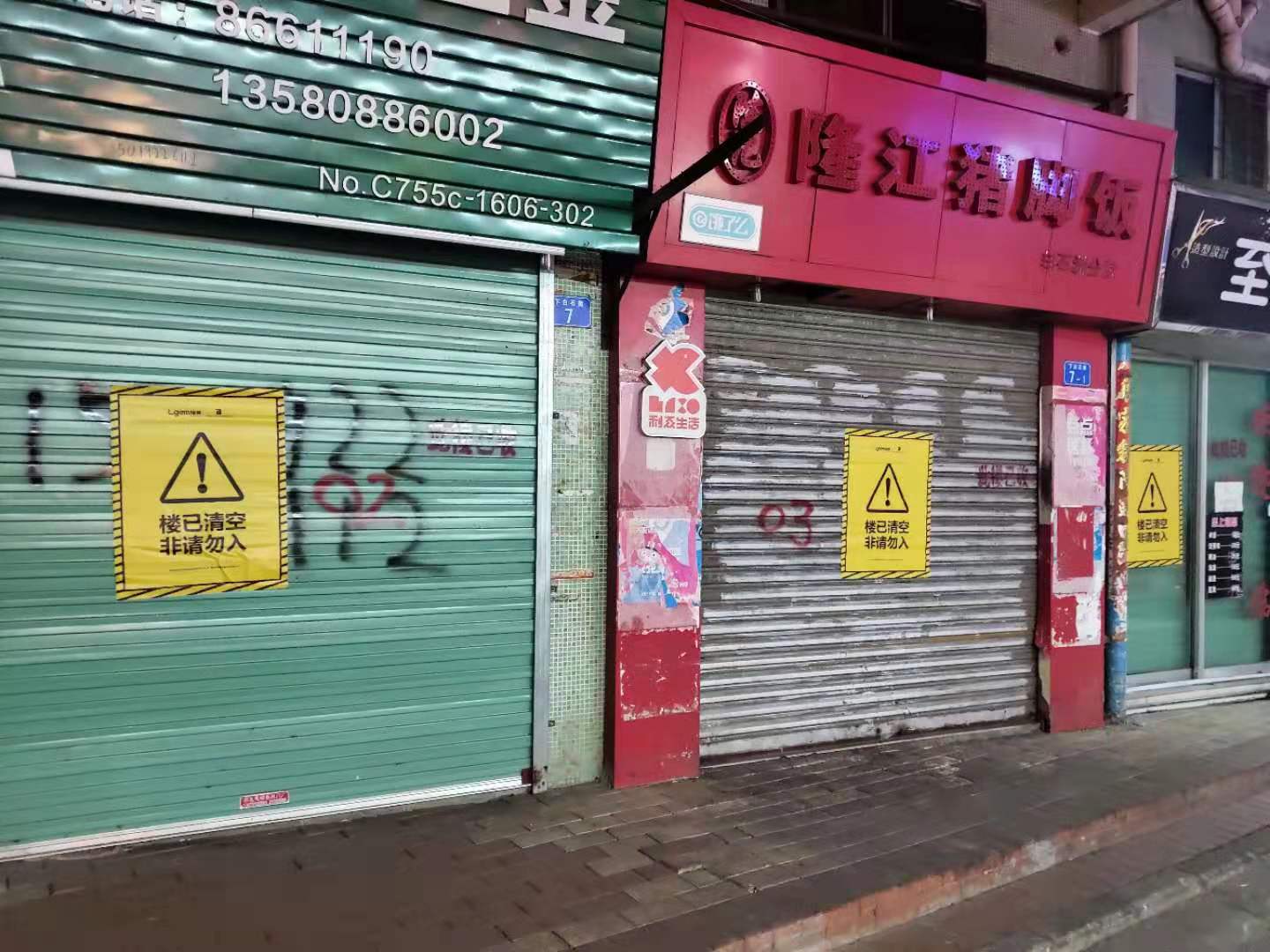 但如今租戶逐漸搬走,這里的商鋪大部分也已關(guān)門,沒有住戶的樓里黑燈瞎火。一部分住宅樓已經(jīng)被清空,樓下甚至搭起了圍擋,“樓已清空、非請勿入”的標(biāo)語隨處可見。巷子里偶爾遇見行人,卻不見形色匆匆,似乎少人的通道,總能讓人感到愜意。