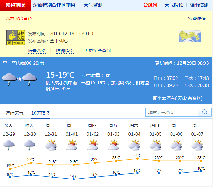 見圳客戶端·深圳新聞網(wǎng)2019年12月29日訊 大雨和冷空氣在年底前在深圳最后一次沖業(yè)績來了!據(jù)深圳市氣象臺29日凌晨4:57發(fā)布的最新預(yù)報,今天周日有中到大雨,伴有零散雷暴,氣溫也將是近幾天的最低,為15-19℃。