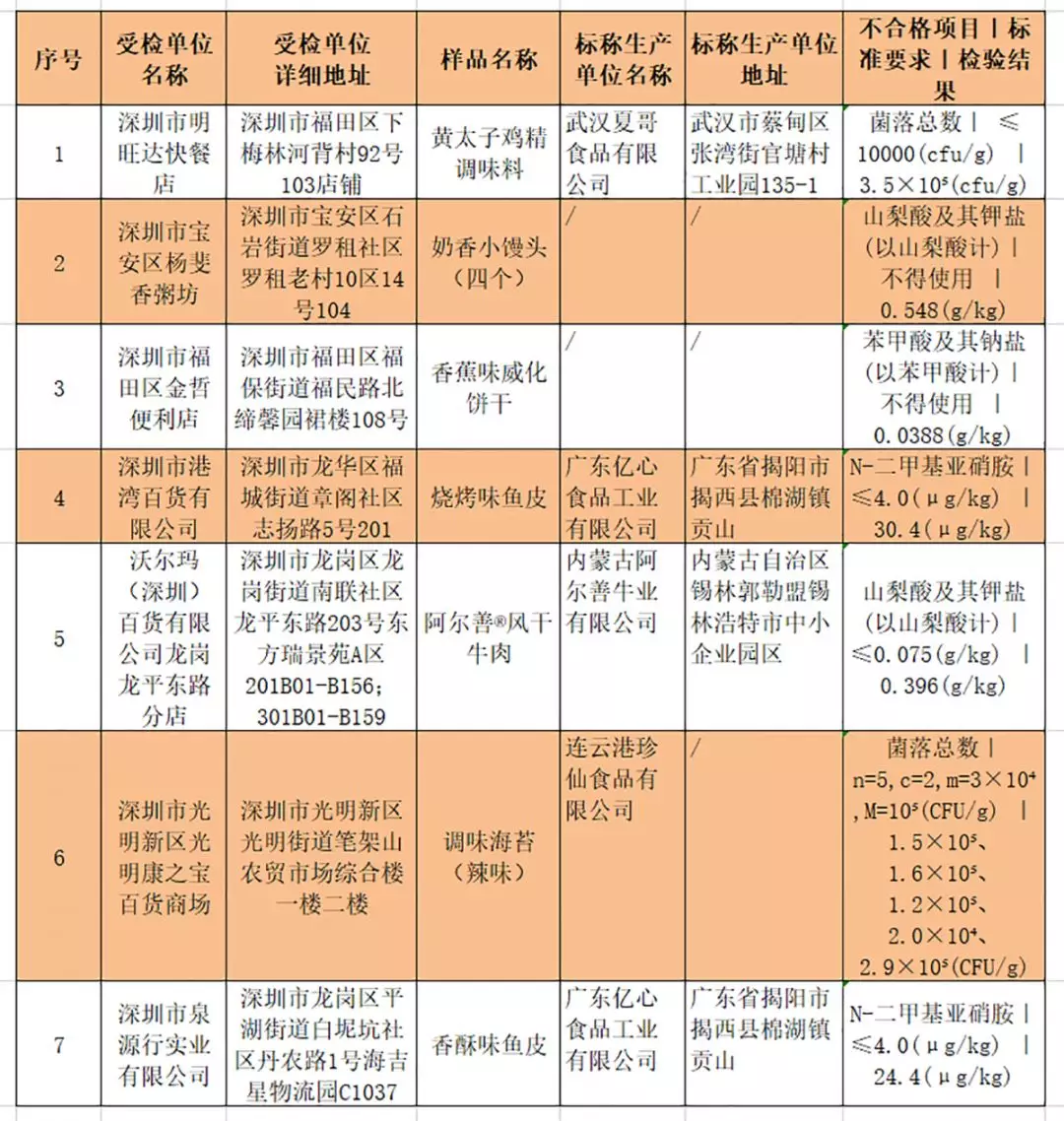 本次共抽檢流通、餐飲環(huán)節(jié)食品844批次,涉及流通、餐飲環(huán)節(jié)經(jīng)營主體256家次,共檢測食品指標6187項次。其中檢出不合格樣品7批次,涉及不合格食品類別有餅干1批次,餐飲食品1批次,肉制品1批次,水產(chǎn)制品3批次,調(diào)味品1批次;涉及不合格項目類別為微生物污染、食品添加劑、其他污染物。