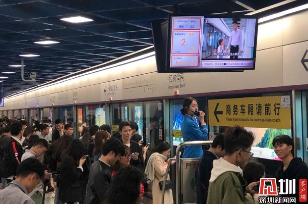 跨年夜深圳地鐵紅樹(shù)灣南地鐵站客流情況。