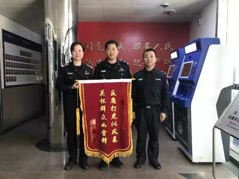 近日,順利回家的程先生為了感謝景田派出所給予的幫助,特地快遞送了一封感謝信及寫著“反腐打虎似風(fēng)暴關(guān)懷群眾如雷鋒”的錦旗到派出所表達(dá)謝意。