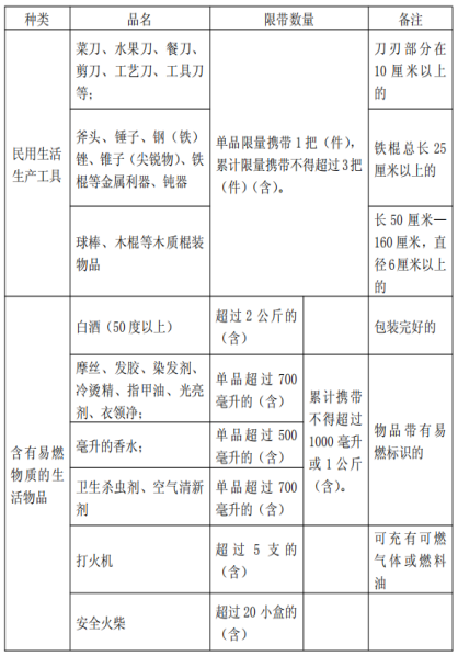 春運(yùn)禁帶、限量物品: