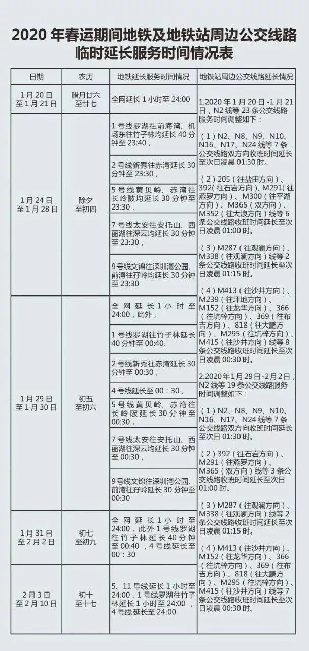 深圳地鐵全網(wǎng)及周邊公交線延時安排,