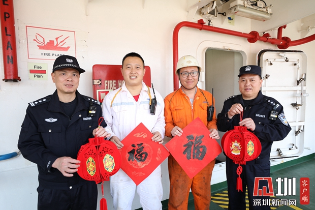 蛇口邊檢站舉辦第六屆“迎新春送春聯(lián)萬福進(jìn)萬家”活動,邊檢民警現(xiàn)場潑墨揮毫送春聯(lián),警民攜手舉辦合家宴,邊檢民警與社區(qū)居民們一起包餃子、品美食、聊家常,展現(xiàn)了溫暖國門親民、愛民的國門形象。此外,邊檢民警登上郵輪、集裝箱輪,給漂泊在外的船員們送“?!?。