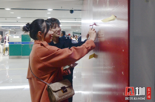 潮汕機(jī)場(chǎng)邊檢站民警與旅客留下祝福貼紙。