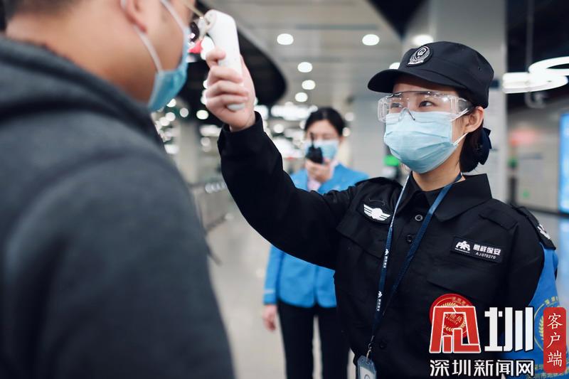深圳地鐵工作人員對往來乘客進(jìn)行體溫檢測。