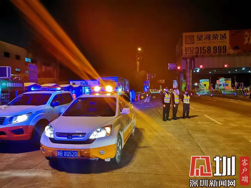 深高速公司工作人員在龍大高速免費(fèi)段進(jìn)行深夜值守。
