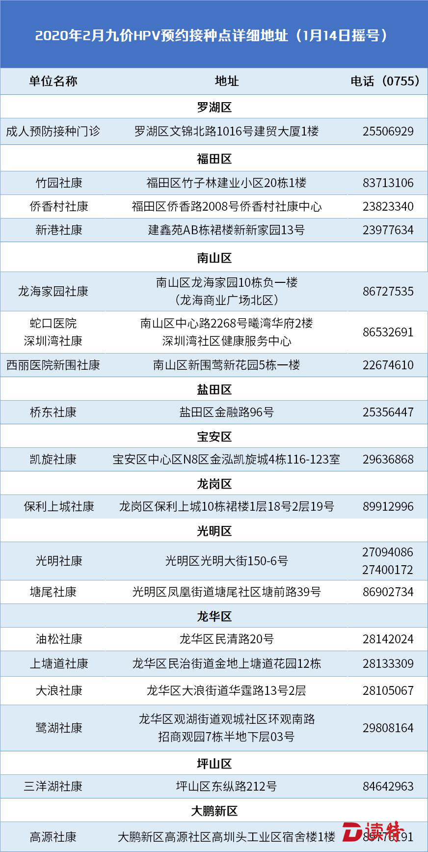 深圳特區(qū)報2020年1月31日訊 為貫徹執(zhí)行《廣東省推出防控新型冠狀病毒感染的肺炎疫情一級響應(yīng)16條措施》,經(jīng)專家評估并報深圳衛(wèi)健委同意,決定全市預(yù)防接種門診的開診時間,暫推遲到2月14日后,具體時間視防控工作需要另行通知。搖中今年1月九價HPV疫苗的小姐姐,不用擔(dān)心,2月14日后再撥打社康咨詢電話,和工作人員協(xié)商修改這次的打針時間。