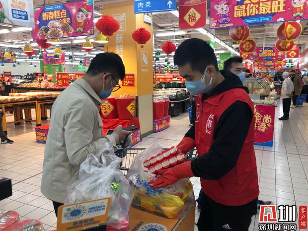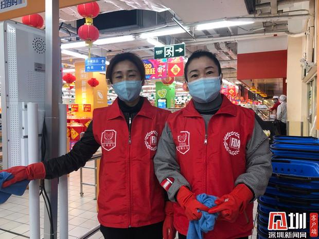 “其實(shí)家里人知道后也不贊成我們這個(gè)時(shí)候來做志愿者,畢竟也有點(diǎn)擔(dān)心嘛”于文平對(duì)記者說:“我們作為一個(gè)小市民,對(duì)國(guó)家來說大的貢獻(xiàn)可能談不上,但是因?yàn)槲蚁矚g深圳這座城市,所以我決定要出一份力,做一些力所能及的事,過年期間能讓大家吃上安心的食品,來購物的時(shí)候能用上消毒過的購物車、購物籃,我也覺得很開心。”
