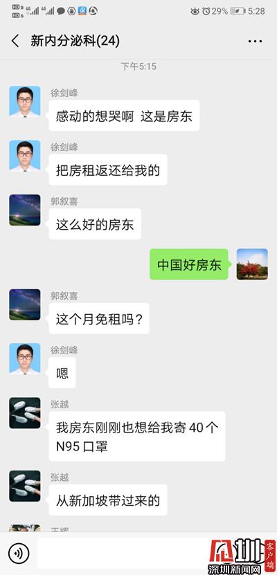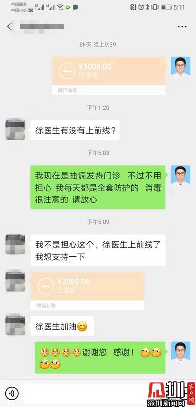 2日上午,寶安中醫(yī)院(集團(tuán))隔離病房工作的徐醫(yī)生,遇到了令他十分感動(dòng)的事。他通過微信向房東交房租,房東問他是不是在防控前線工作,徐醫(yī)生以為房東怕傳染而嫌棄他,連忙向房東解釋自己做好了防護(hù)消毒,不用擔(dān)心,沒想到房東直接把房租退了回去,表示要支持徐醫(yī)生在前線工作,真是暖心啊!