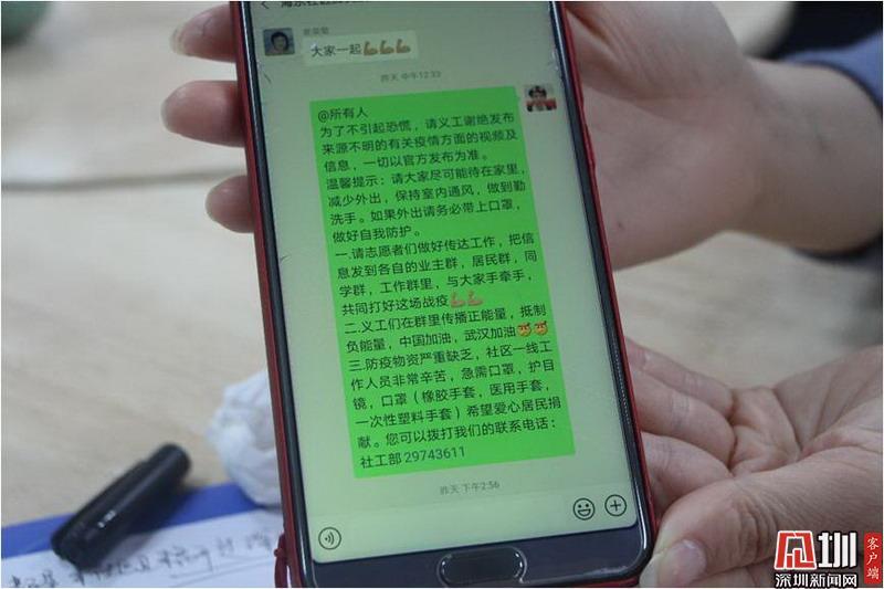 見圳客戶端·深圳新聞網(wǎng)2020年2月5日訊(見圳客戶端、深圳新聞網(wǎng)記者 吳梓欣)肺炎疫情,牽動著每個深圳人的心。一場關系到每位公民生命健康的疫情防控戰(zhàn)已經(jīng)打響,而他們作為這座城市的主人公之一也從未缺席,他們便是深圳義工。1月28日,深圳市寶安區(qū)新安街道海樂社區(qū)黨群服務中心社區(qū)工作站一則招募“防疫義工”的消息出現(xiàn)在海樂義工群里,僅一個小時便召齊了20名志愿者。