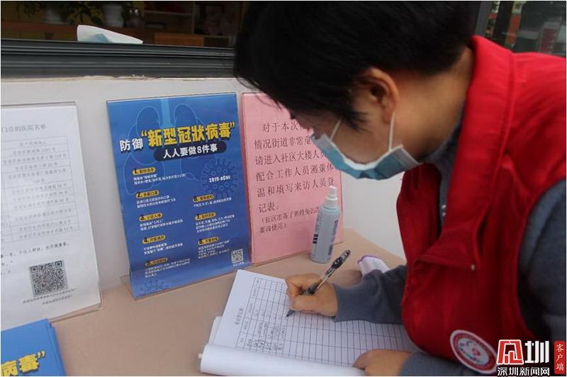 5日上午10點(diǎn),記者在海樂社區(qū)看到,街道上人跡罕見,一片冷清,部分道路已被封鎖。據(jù)了解,海樂社區(qū)嚴(yán)防死守社區(qū)道路主要出入口,特設(shè)了10個(gè)體溫檢測(cè)點(diǎn),每個(gè)站點(diǎn)配備有2名工作人員。他們從上午9點(diǎn)一直工作到晚上11點(diǎn),兩班輪換,主要負(fù)責(zé)轄區(qū)進(jìn)出人員體溫檢測(cè),返深人員初步登記,防疫資料派發(fā)。每天上午10點(diǎn)左右,吳麗及其他義工會(huì)隨社區(qū)的車隊(duì)到各個(gè)站點(diǎn)運(yùn)送物資?!八麄円埠苄量嗟模砩贤膺呌掷?,我們每天都會(huì)過來給他們送一些熱水熱茶,再看看有什么其他需要的。”