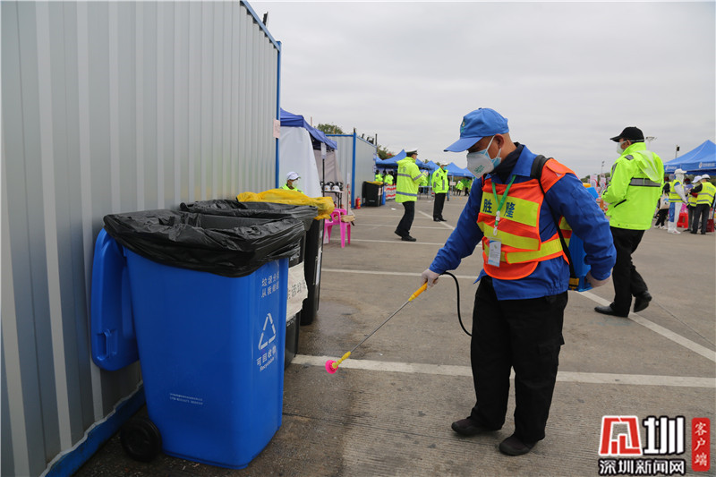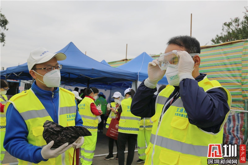 “全副武裝”后,龍崗區(qū)文化廣電旅游體育局局長(zhǎng)劉德平(右)準(zhǔn)備上一線。