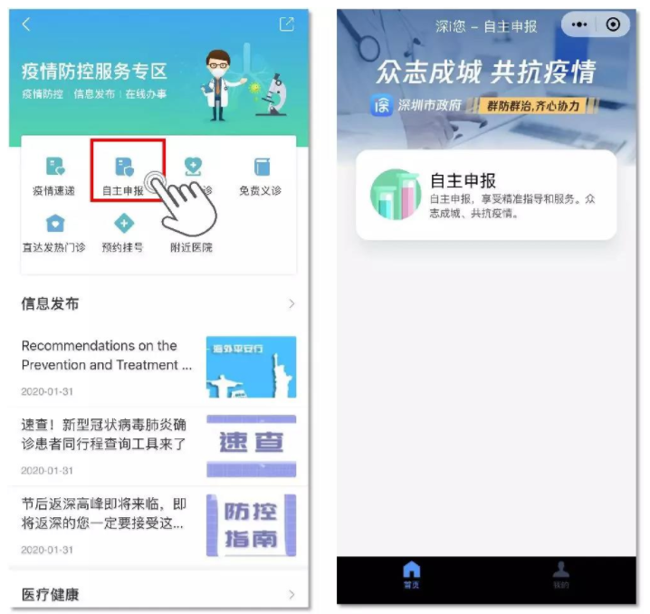 1、微信搜索欄:在微信搜索欄直接搜索“深i您-自主申報(bào)”,按照頁(yè)面提示如實(shí)填寫(xiě)相關(guān)信息即可;