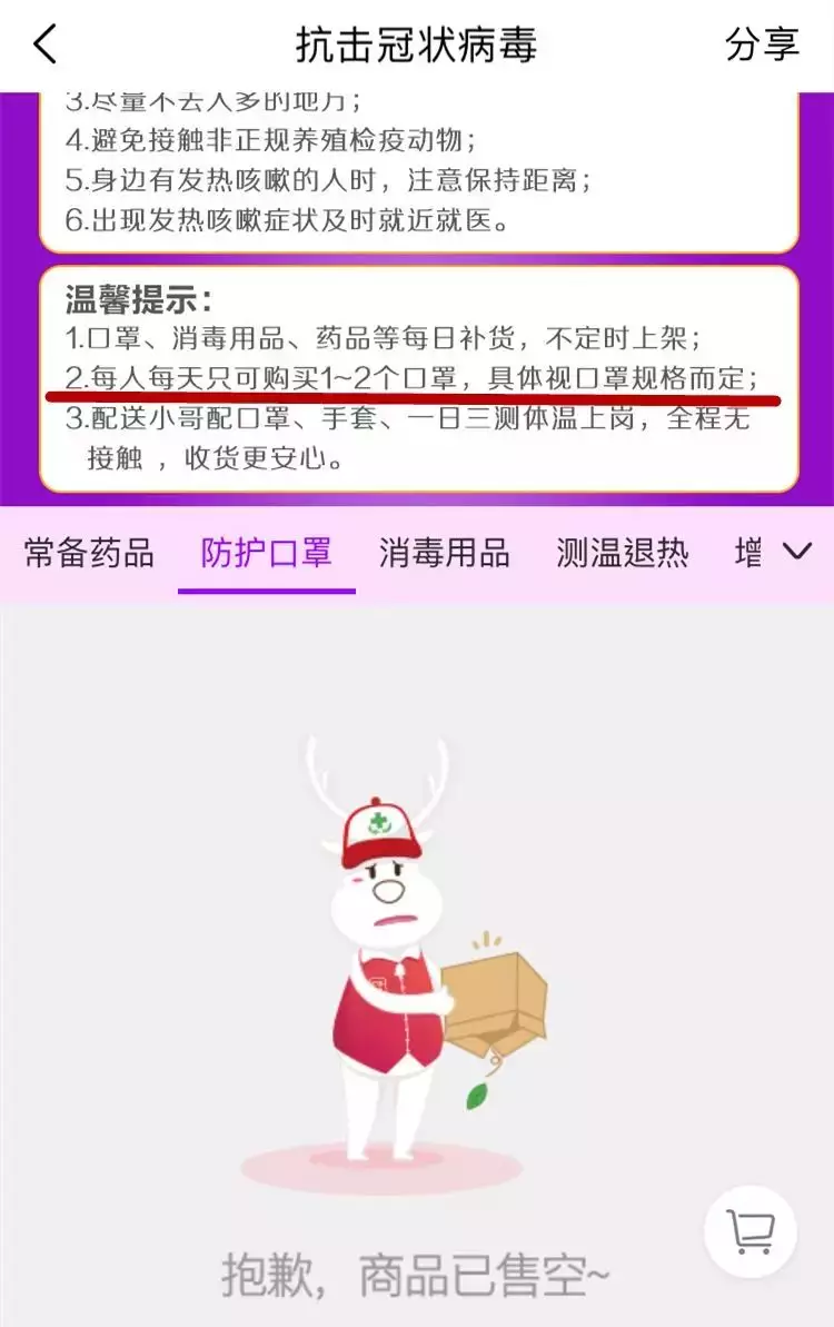 記者了解到,叮當(dāng)快藥全程采取線上下單、線下無接觸配送的模式?;?jīng)理進(jìn)一步解釋道,為了保障消費(fèi)者與員工安全,配送員會(huì)全程佩戴護(hù)目鏡、頭盔、手套及口罩,送到門衛(wèi)或者小區(qū)樓下,讓消費(fèi)者自取。所以小編提醒,為了安全,大家千萬不要去門店排隊(duì)購買哦!接下來叮當(dāng)快藥從海外:美國、韓國、俄羅斯等地購買的口罩還會(huì)陸續(xù)到貨及上線。