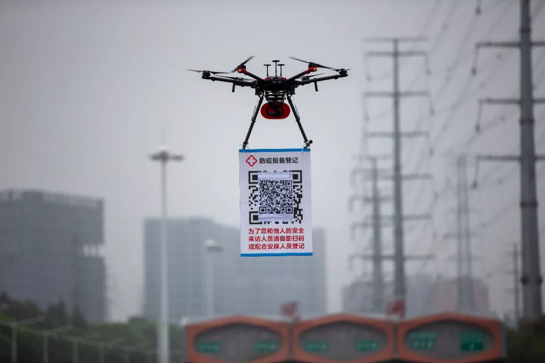 隨著返深車輛和人員的增加,深圳從8日開始啟用線上車輛申報登記。為提高申報效率,搭載喊話器、懸掛申報二維碼的無人機成為防疫一線工作人員的得力助手。民警操作無人機在車輛隊伍中穿梭,并通過喊話器提醒駕乘人員掃碼登記,減少人員接觸的同時提高了效率。