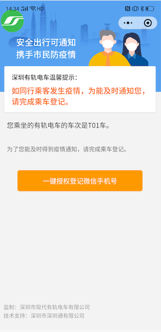 見圳客戶端·深圳新聞網(wǎng)2020年2月15日訊 據(jù)“深圳市軌道交通”當(dāng)前,防疫工作仍舊是重中之重,尋找確診病例乘坐公共交通工具時(shí)的同行人是疫情防控的重要一環(huán)。為此,深圳有軌電車將于明天(2月16日)上線“電車同乘信息系統(tǒng)”。屆時(shí),所有乘客信息將可查詢、可追溯,進(jìn)一步助力疫情防控!