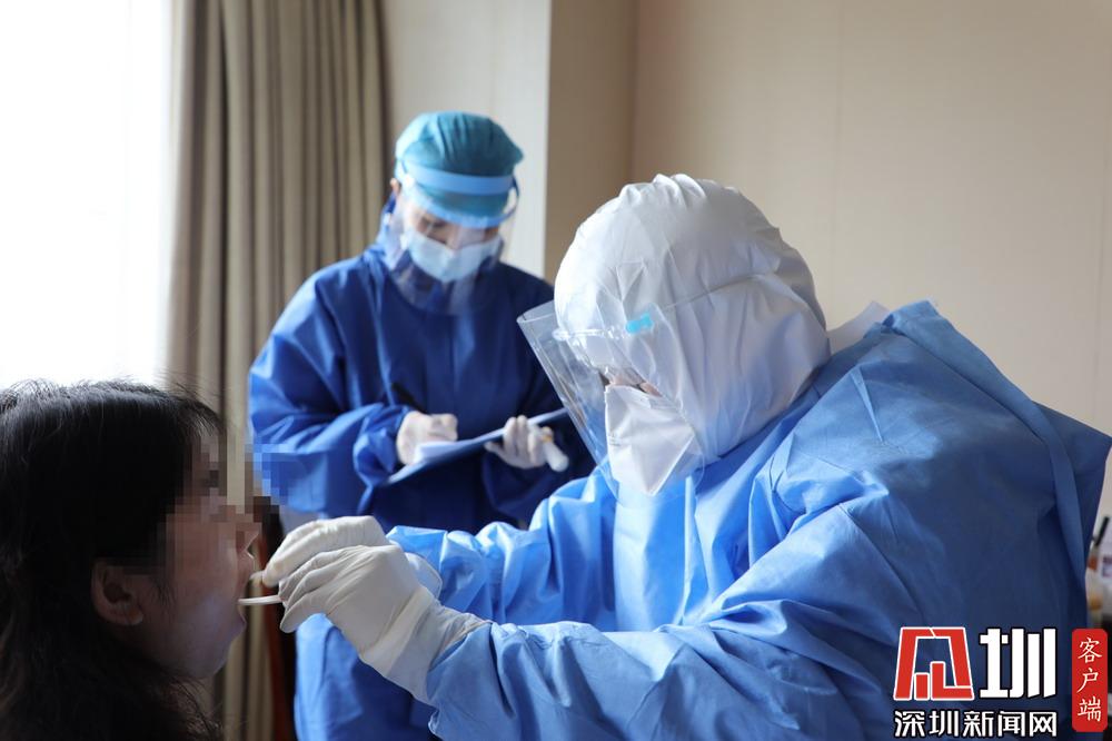 “您好!我們是醫(yī)院來做核酸檢測采樣的?!?月15日上午,新桃園酒店一些樓層的走廊里,響起了一陣陣敲門聲和一句句簡單的自我介紹,這是協(xié)和深圳醫(yī)院的核酸采樣流調(diào)小分隊來了。