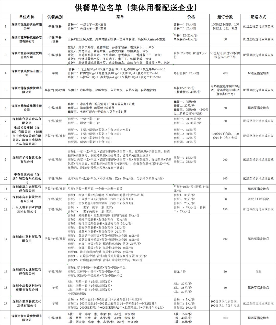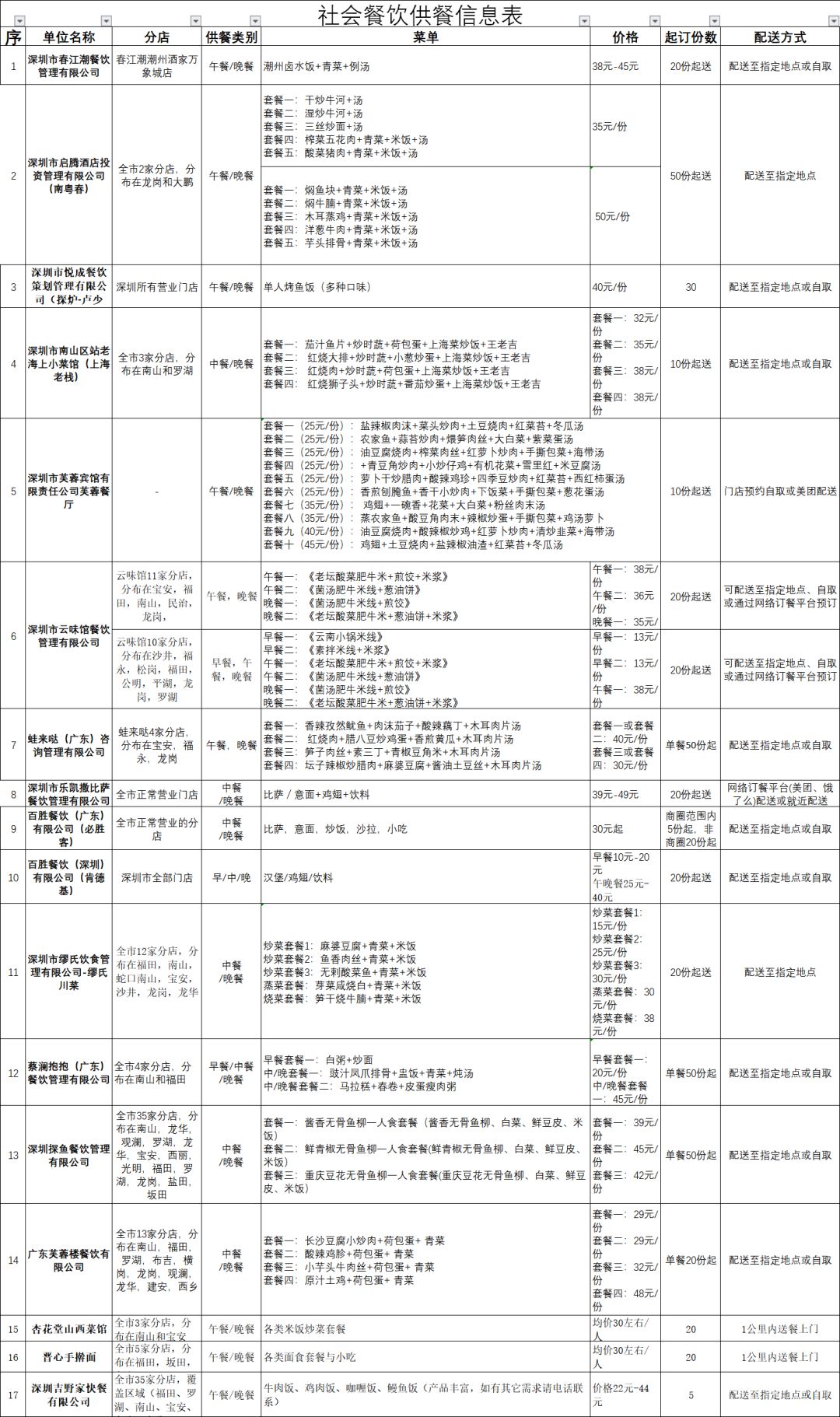 為了保障復(fù)工后集體用餐的安全,深圳市市場監(jiān)督管理局協(xié)調(diào)了安全的訂餐渠道,目前已經(jīng)有79家供餐單位!