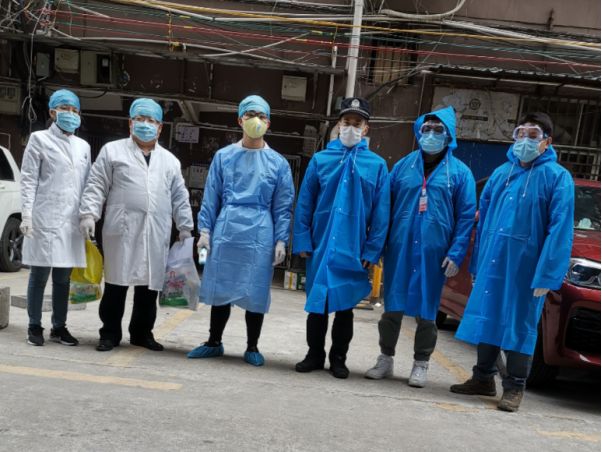 ▲李忠旺和其他抗疫人員準(zhǔn)備入戶了解隔離人員情況。