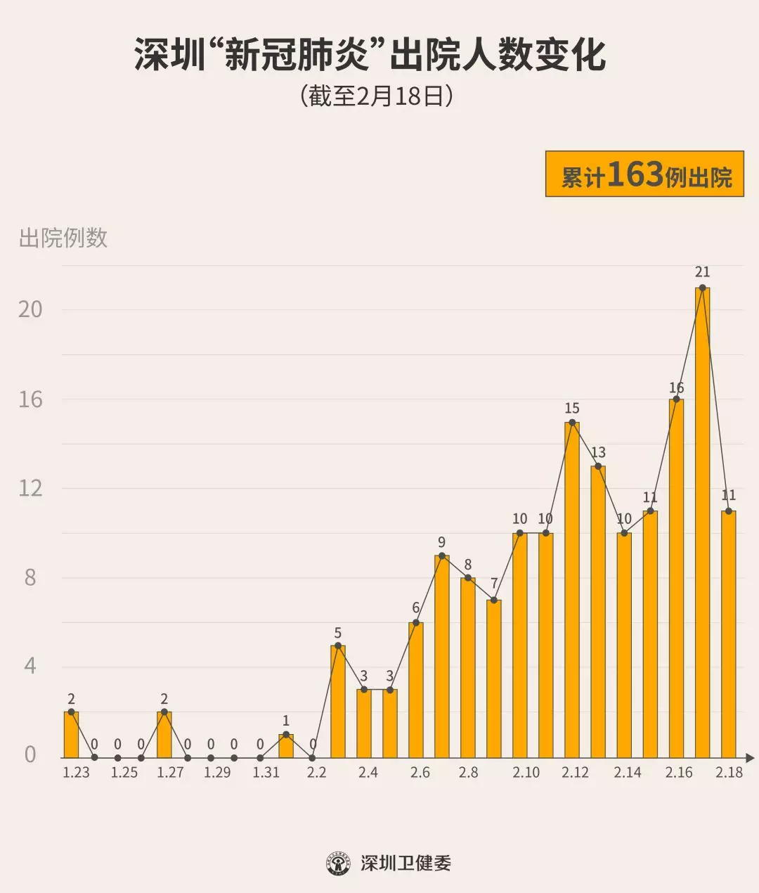 2月18日下午,經(jīng)專家組會(huì)診,深圳再有11名新型冠狀病毒肺炎確診患者出院,累計(jì)達(dá)163人,連續(xù)16天有人出院。