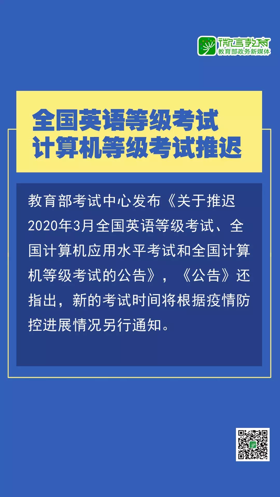 注意啦!研究生、中小學教資、全國英語等級等考試推遲