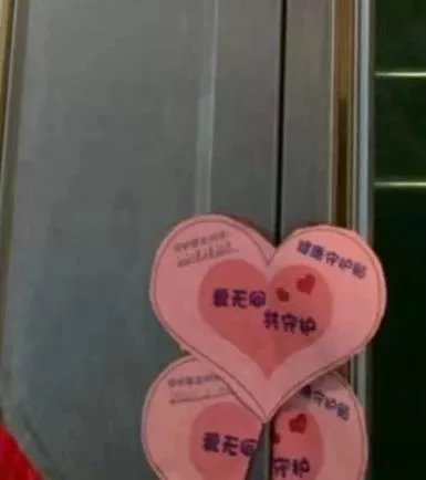 深圳南山一小區(qū)單元出入口,隔著玻璃看去,電梯上的封條寫著“隔離不隔情、隔疫不隔愛(ài)”的溫馨提示。