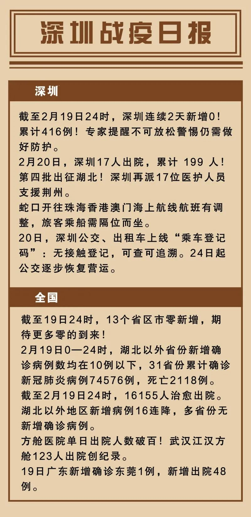 ①2月20日下午,經(jīng)專家組會診,深圳再有17名新冠肺炎確診患者出院,累計達199人,連續(xù)18天有人出院。