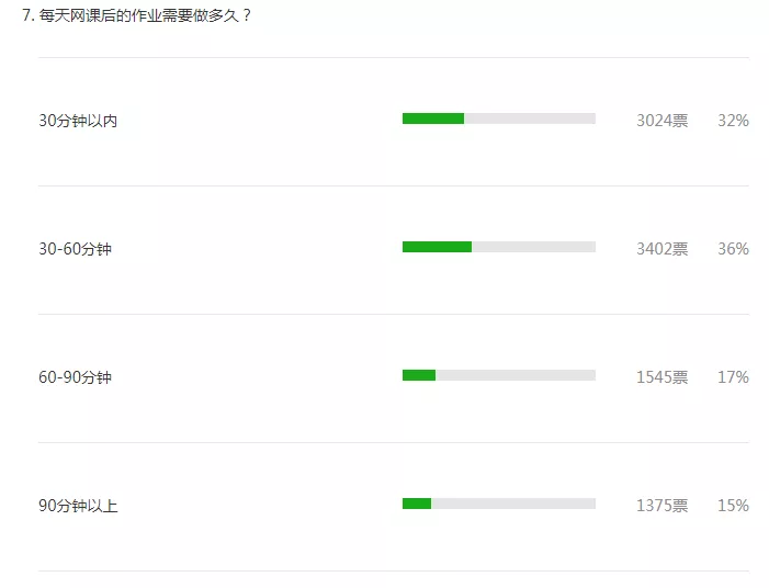 根據投票結果,68%的人認為網課后的作業(yè)在60分鐘內可以完成。不過,許多參與者認為網課后的作業(yè)對于家長來說負擔較重。