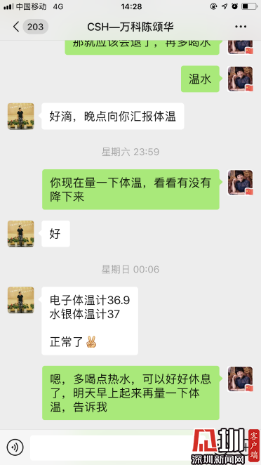·西麗社康醫(yī)務(wù)人員協(xié)同物業(yè)管理處,建立居家隔離的溝通微信群,住戶每天上報(bào)體溫,如有異常,安排社康工作人員上門排查,聯(lián)絡(luò)工作站人員聯(lián)系120轉(zhuǎn)診。