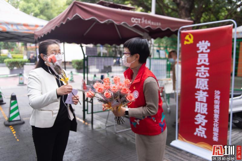 見圳客戶端·深圳新聞網(wǎng)2020年3月6日訊 3月6日上午,春暖花開,萬物更新。華僑城創(chuàng)意文化T街入口,進(jìn)入園區(qū)上班的員工除了接受體溫檢測(cè)、出示入園卡等常規(guī)動(dòng)作外,女員工意外收到了一束鮮花和一張“三八”節(jié)賀卡,賀卡上寫著:帶著溫柔堅(jiān)定的力量抗“疫”前行!這是園區(qū)黨員志愿者對(duì)“抗擊疫情、復(fù)工復(fù)產(chǎn)”中廣大女職工的禮贊。