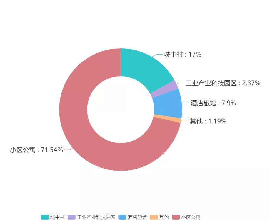 ▲福田、龍崗、寶安城中村病例較多。大鵬新區(qū)病例均在酒店旅館停留,為輸入型病例。