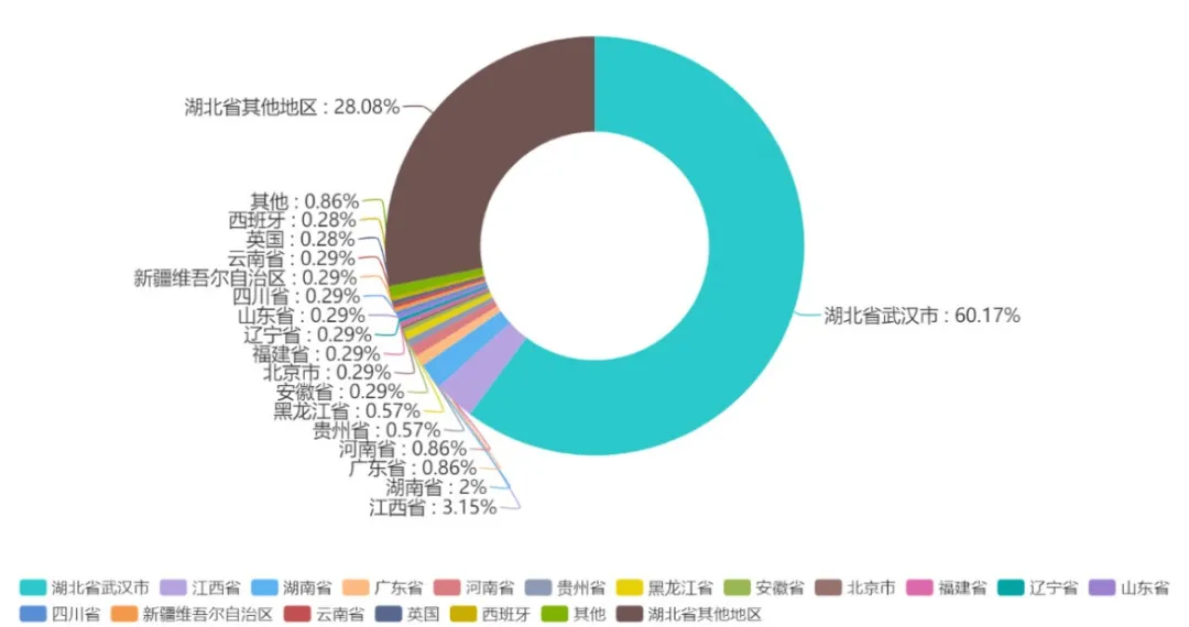 ▲所有輸入型病例中,近六成與湖北武漢有關(guān)聯(lián),湖北省其他城市也為重點來源地區(qū)。可見,對湖北來深人員、有湖北旅居史人員的管控工作是防疫工作的重要一環(huán)。