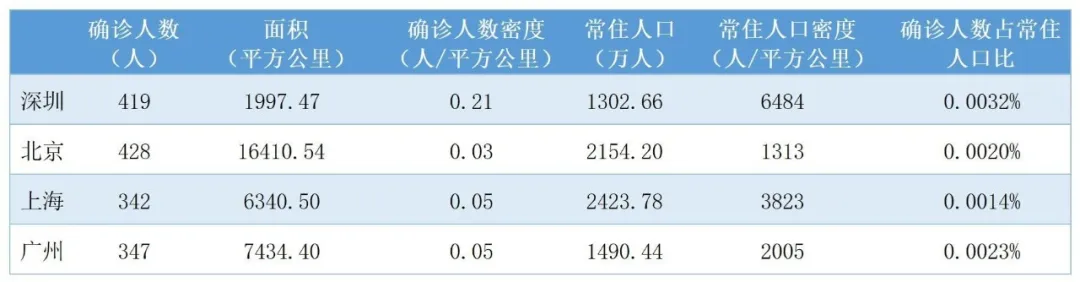 表1北上廣深確診情況對比表