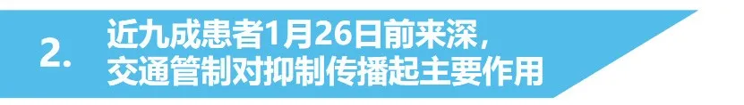 ▲大部分確診病例于1月26日前來深。湖北地區(qū)于1月25日全境交通管制后,有效減少了人員輸出,抑制了病毒傳播。