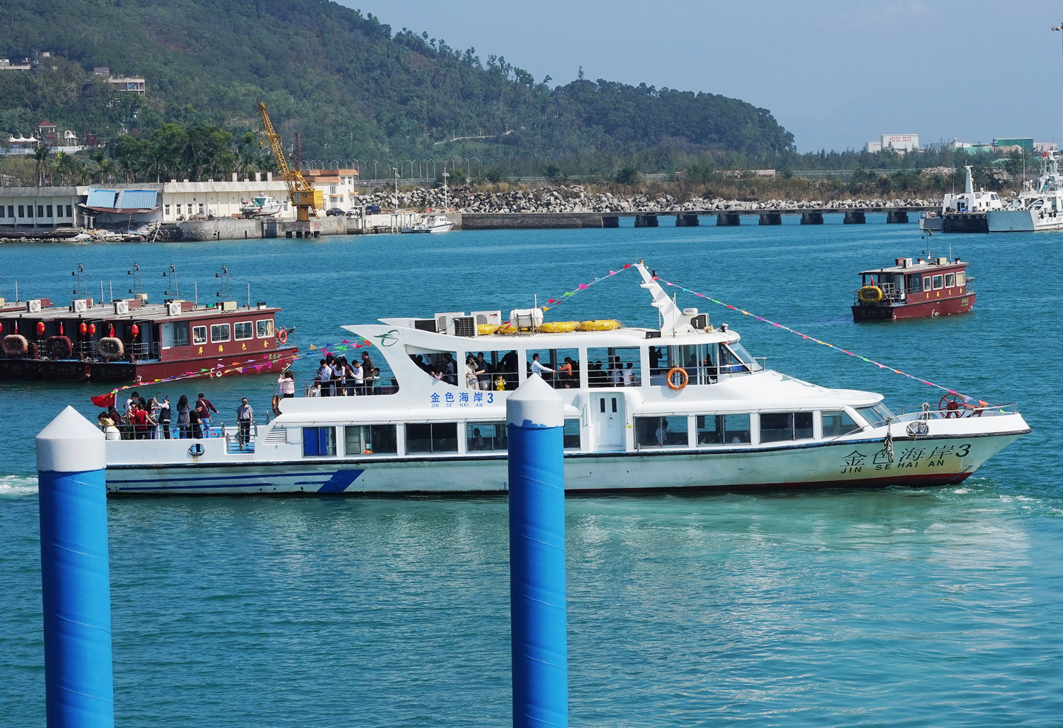 ??吭邴}田金色海岸碼頭處運(yùn)營(yíng)游船。韋建誠(chéng)攝