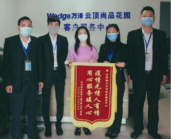 云頂尚品小區(qū)業(yè)主為了感謝物業(yè)在疫情防控期間堅(jiān)守崗位,也自發(fā)組織捐款21250元為物業(yè)單位員工獻(xiàn)愛心,并送上寫著“疫情無情人有情,用心服務(wù)暖人心”的錦旗。