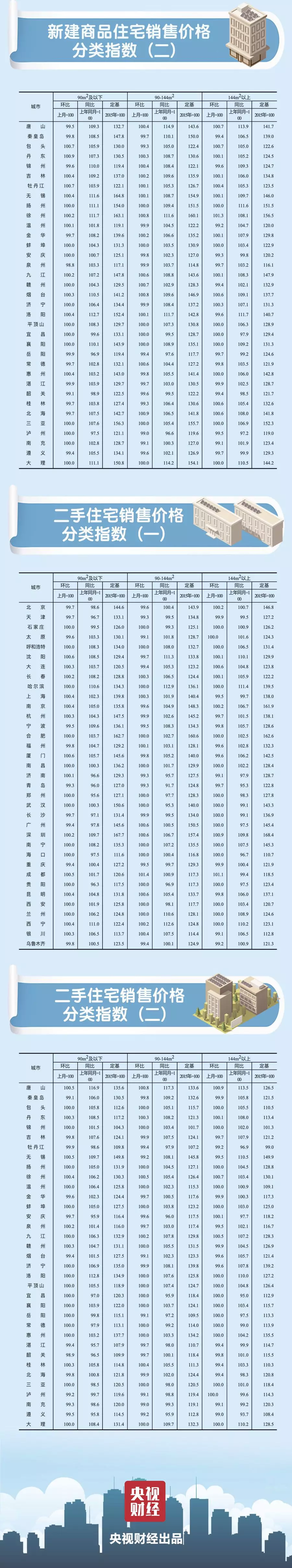 一二三線城市新建商品住宅銷售價(jià)格環(huán)比持平或漲幅回落、二手住宅銷售價(jià)格漲跌互現(xiàn)