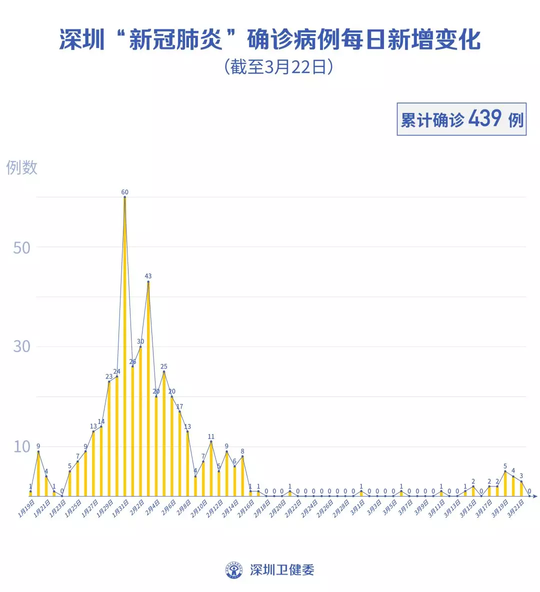 截至3月22日24時,深圳累計報告“新冠肺炎”病例439例。3月22日當(dāng)天無新增,出院2例。