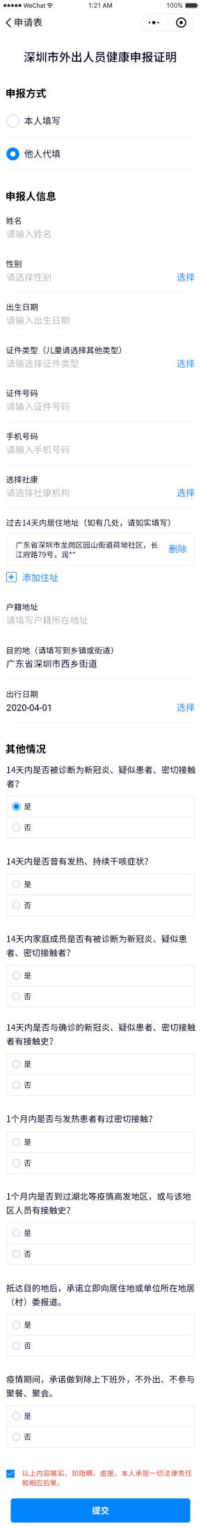 目前,深圳全市所有社康均可出具 《深圳市外出人員健康申報(bào)證明》。需要提醒的是,沒有微信的老人和小孩可由他人代填,此外,如果出行日期和目的地等有所變更,市民只需重新申報(bào)即可。